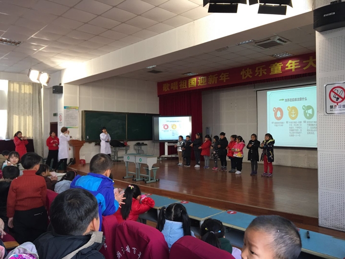 ??? 新一輪的流感病毒開(kāi)始肆虐,兒童由于抵抗力比較低,更容易受到流感的傷害,到了流感季節(jié)更應(yīng)該積極做好預(yù)防措施。1月15日上午,我院血液內(nèi)科的護(hù)士們來(lái)到了衢州市鹿鳴小學(xué),給一年級(jí)的孩子們科普流感防御的重要環(huán)節(jié)——洗手。