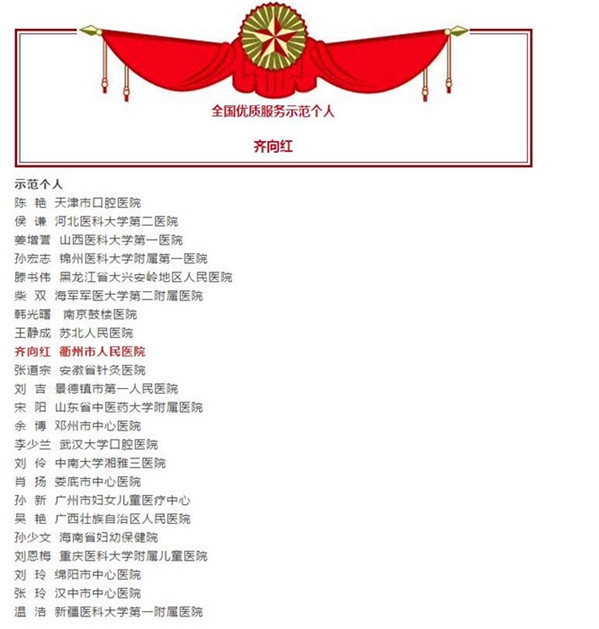 我院榮獲全國優(yōu)質醫(yī)療服務示范醫(yī)院,齊向紅榮獲全國優(yōu)質醫(yī)療服務示范個人