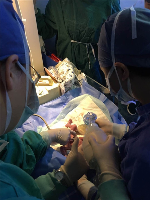 ??? 但是,媽媽的宮內(nèi)環(huán)境已經(jīng)不適合寶寶繼續(xù)呆下去。醫(yī)院組織搶救小組討論后認為,寶寶隨時存在胎死宮內(nèi)的可能性,于是決定對徐女士實行剖宮產(chǎn)術終止妊娠。產(chǎn)科、新生兒科、麻醉科的醫(yī)護人員和助產(chǎn)士聚集在手術室,靜待寶寶的出生。