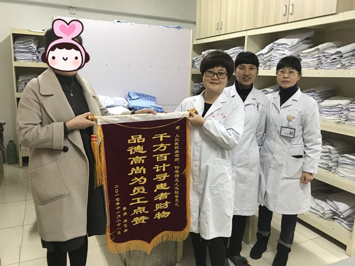 ??? 原來,這位患者隨手往病服里放了1000元錢,后更換病服后就忘記這個(gè)事情。當(dāng)天上午10點(diǎn)多,患者才想起來,急忙找到科室保潔詢問病服下落。保潔員發(fā)現(xiàn)病服已被拉走,立即通知朗泰公司保潔主管朱麗琴,朱麗琴聯(lián)系后得知,病服已被洗衣工拉到分院洗衣房進(jìn)行洗滌,于是趕忙聯(lián)系總務(wù)處和洗衣房的工作人員。