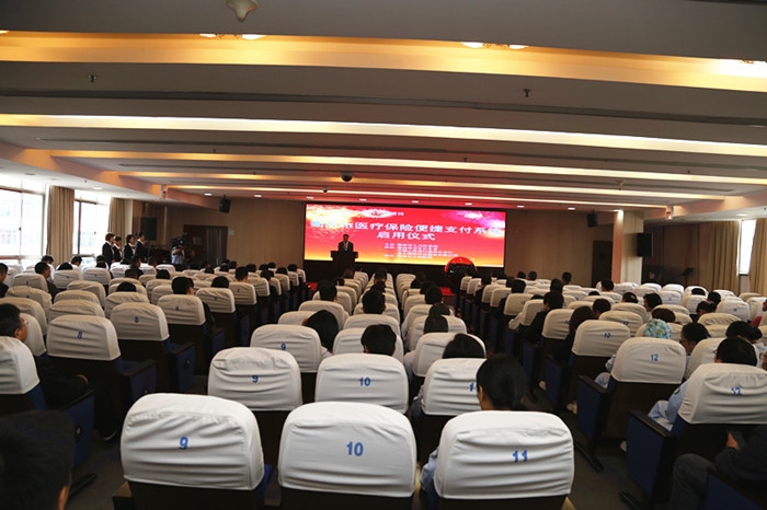 ??? 11月16日上午,衢州市醫(yī)療保險便捷支付系統(tǒng)啟動儀式在我院舉行。市委常委、常務(wù)副市長湯飛帆,市人大副主任俞順虎、市政協(xié)副主席陳建良,省醫(yī)保中心主任周堅蒞臨啟動儀式。市人社局、市發(fā)改委、市財政局、市衛(wèi)生計生委、市市場監(jiān)管局、人行衢州市分行等相關(guān)單位部門負(fù)責(zé)人,各縣(市、區(qū))人力社保局相關(guān)負(fù)責(zé)人,阿里巴巴公司領(lǐng)導(dǎo)以及二級以上定點(diǎn)醫(yī)療機(jī)構(gòu)負(fù)責(zé)人參加了啟用儀式。