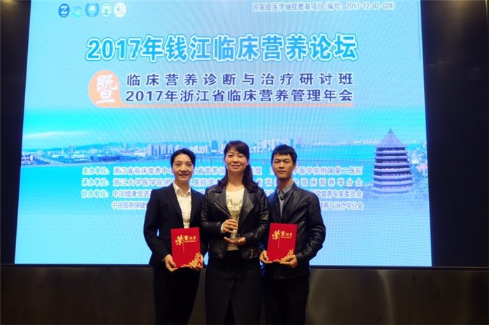 ??? 我院營養(yǎng)科方雪彬、封育瑾團隊經(jīng)過初賽、決賽等挑戰(zhàn),憑著對營養(yǎng)工作的獨特見解及規(guī)范的營養(yǎng)治療原則,他們的《食管癌術(shù)后營養(yǎng)參與》病例分享在省內(nèi)多家醫(yī)院的21個團隊中脫穎而出,獲得浙江省首屆臨床營養(yǎng)病例比賽三等獎。