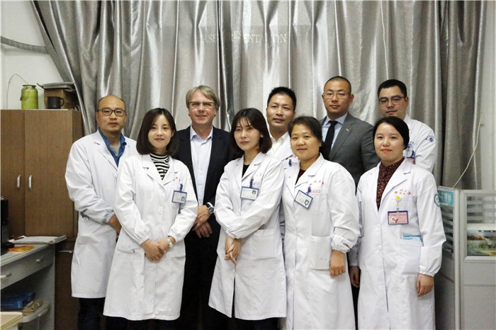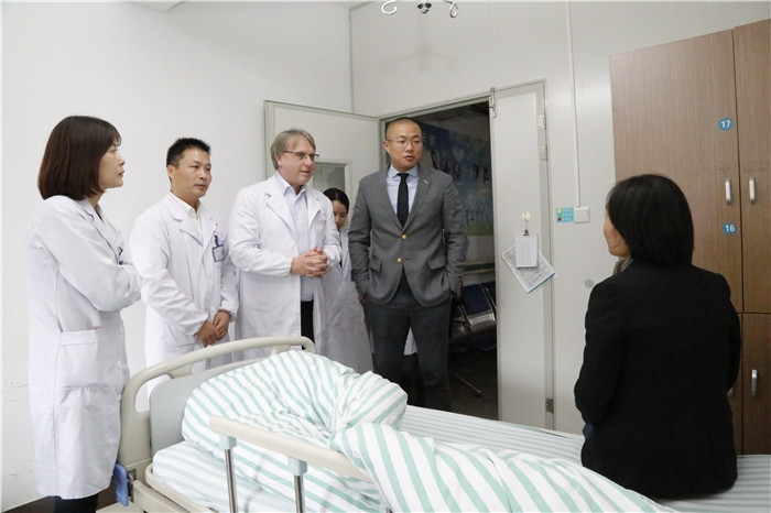 ??? Kohne教授主要擅長胃腸腫瘤及血液腫瘤治療,這次來中國主要是ESMO胃腸腫瘤巡講。當(dāng)日,Konhe教授在我院腫瘤內(nèi)科病房進(jìn)行查房,期間與科室醫(yī)務(wù)人員親切交談,對于腫瘤內(nèi)科的診療技術(shù)表示了肯定。