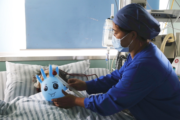??? ??? 在我院ICU(重癥監(jiān)護(hù)室)的病床上,可以看到一個(gè)個(gè)神奇的“五指精靈”,它是由美小護(hù)們用橡膠手套變出來的。