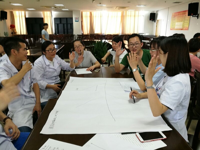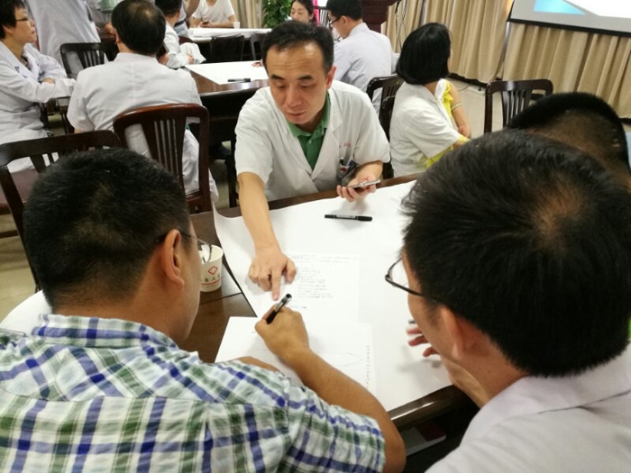 ??? 培訓講師是醫(yī)院質(zhì)控處處長方英,她深情并茂、游刃有余的講課,加上精簡、實用、可操作的授課內(nèi)容,讓一線醫(yī)生更容易接受。各個臨床醫(yī)技科室的主任、住院總代教、質(zhì)量監(jiān)管員等都自覺參與其中,選好主題并尋根問底探求真因,積極獻計獻策,猶如一場頭腦風暴。