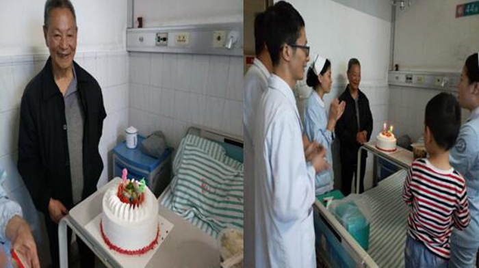 ??? 通過住院信息得知5月4日是老人的生日后,醫(yī)護人員便為老人送上了一碗熱騰騰的長壽面。老人吃著一碗再普通不過的面條,心里卻無比感動。老人覺得這碗面條讓他體會到了“家”的溫暖,更沒想到醫(yī)護人員把他當成親人一樣。為了表示謝意,已經因病多年不能吃甜食的老人特意到美妍蛋糕店買了一個蛋糕和大家一起分享,于是就出現(xiàn)了開頭的那一幕。