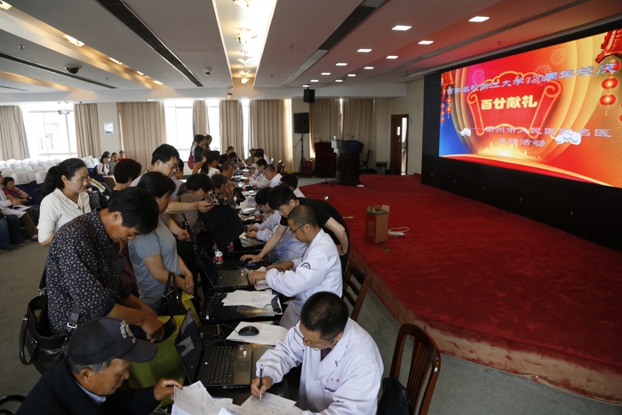 ??? 5月20日,我院組織腫瘤外科、血管外科、泌尿外科、骨科、心血管內(nèi)科、呼吸內(nèi)科、感染科、腎內(nèi)科的9位名醫(yī)專家團(tuán)隊(duì)在五樓學(xué)術(shù)報(bào)告廳舉行浙江大學(xué)建校120周年“百廿獻(xiàn)禮—名醫(yī)在您身邊”大型義診活動(dòng)。