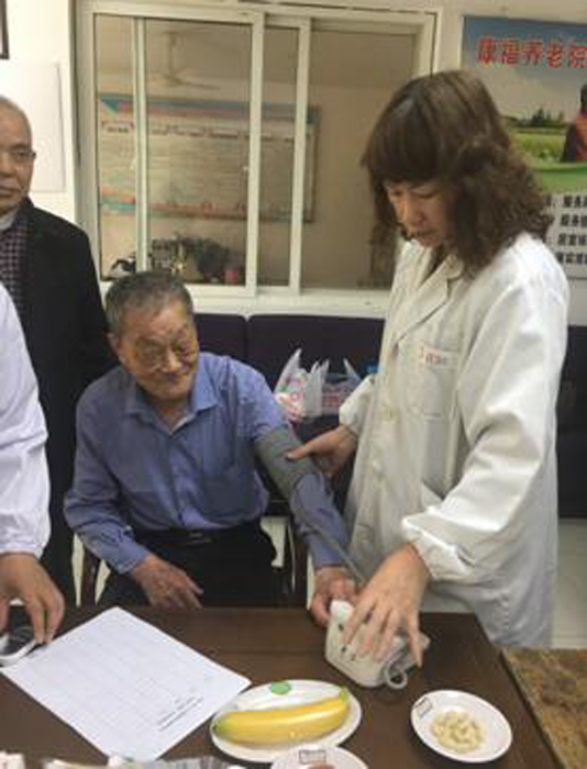 培訓結束后,白衣天使們免費為老人們測血糖、量血壓