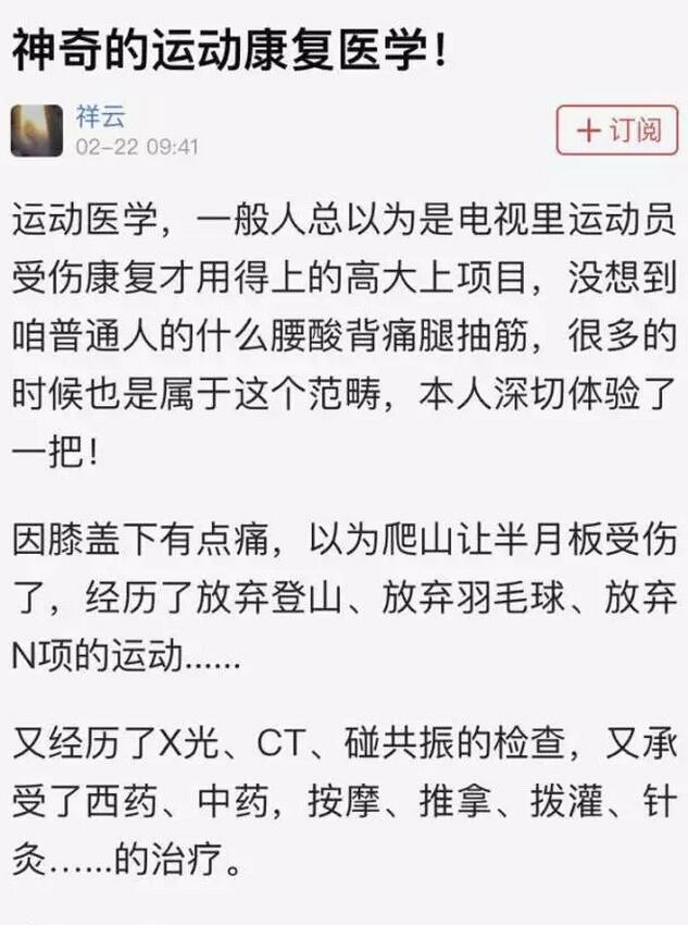 ??? 一個曾經(jīng)的運動達人,在左膝出現(xiàn)問題后,體驗了運動康復醫(yī)學的神奇治療,并大呼神奇!下面,就讓他帶我們?nèi)ァ耙娮C奇跡”吧!