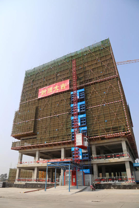 科研辦公綜合樓位于項(xiàng)目東南角,地下一層,地上十一層。總面積31523平方米,2018年11月底板澆筑完成,2019年9月30日順利完成主體結(jié)構(gòu)封頂,是幾棟單體結(jié)構(gòu)中第二個(gè)完成主體封頂任務(wù)的。至此,第一階段施工任務(wù)順利完成,為下一階段施工打下了良好的基礎(chǔ)。