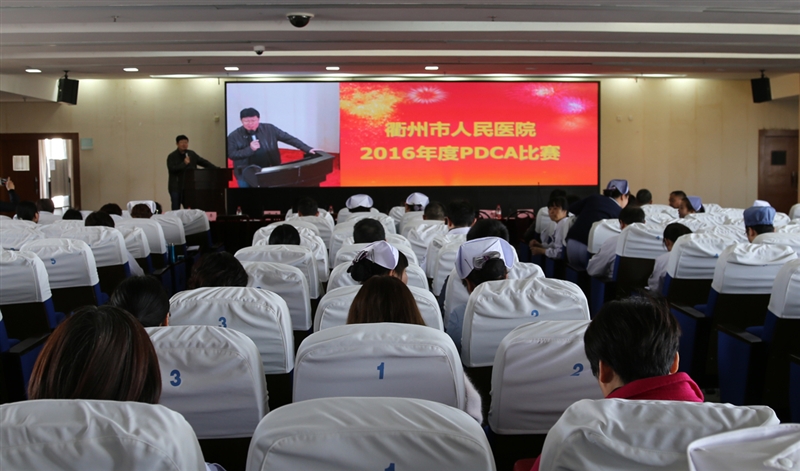 ??? 為使醫(yī)院各部門、臨床科室在日常管理中,自覺運(yùn)用PDCA循環(huán)管理學(xué)工具,不斷提高發(fā)現(xiàn)問題和解決問題的能力,從而提升質(zhì)量與安全水平,改善服務(wù)水平,2月14日,我院首屆PDCA案例展示競賽在五樓學(xué)術(shù)報(bào)告廳舉行。同時(shí)邀請?jiān)侯I(lǐng)導(dǎo)、護(hù)理部、醫(yī)務(wù)處、內(nèi)科片及外科片主任擔(dān)任評委,全院班組長以上人員觀看了此次比賽。