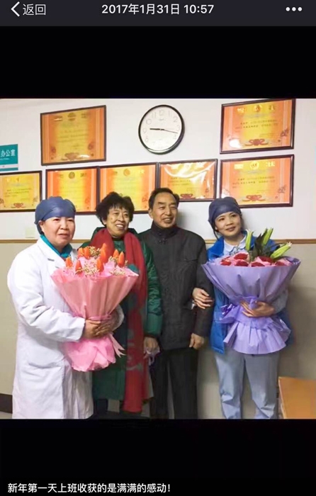 ??? 為感謝住院期間醫(yī)護人員的精心治療和護理,年前剛出院的病人和病人家屬在大年初四過來給醫(yī)生拜年,為加班加點的醫(yī)生帶去不少感動;