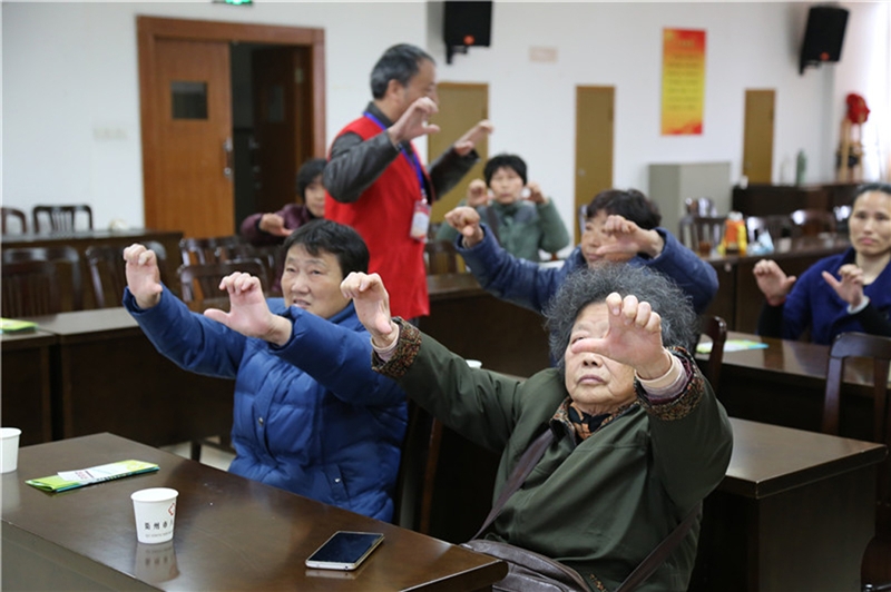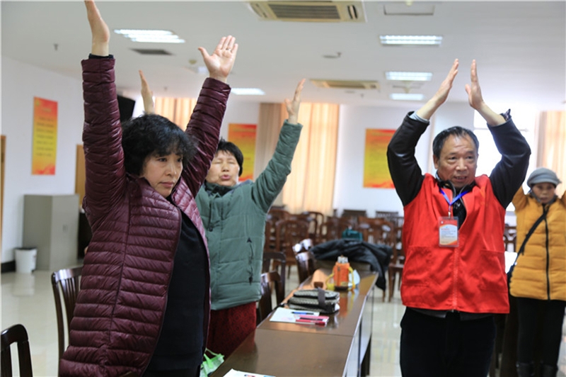 ??? 3月5日上午10點,我院門診樓12樓會議室內,投影儀下播放著健身氣功“八段錦”的教學視頻,二十多名類風濕性關節(jié)炎病友正跟著視頻學做操。