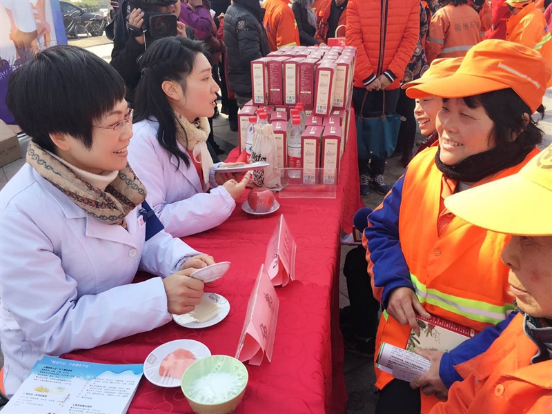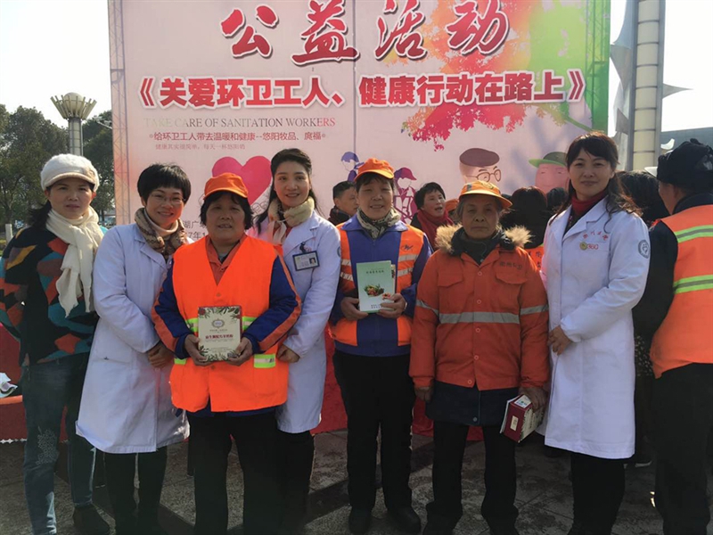 ??? 1月23日上午,南湖廣場上雖然寒風(fēng)凌冽,但是衢州市人民醫(yī)院營養(yǎng)科和護(hù)理部的醫(yī)務(wù)工作者們卻把暖暖的新年祝福送到了環(huán)衛(wèi)工人手中。