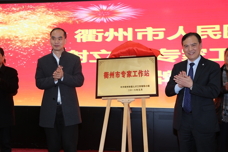 ??? 副市長陳錦標(biāo)和謝立平教授共同為專家工作站揭牌!