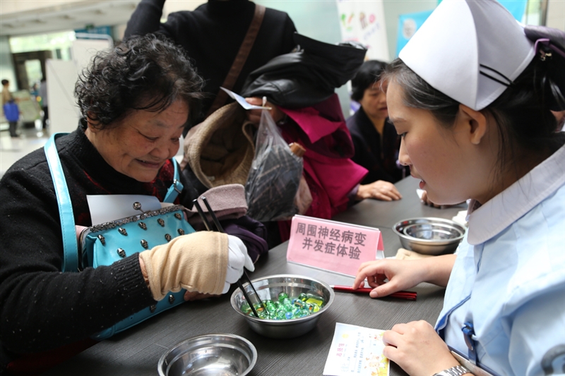 ??? 據(jù)內(nèi)分泌代謝病科護(hù)士長陳育群介紹,活動(dòng)主要是提高群眾對糖尿病疾病的認(rèn)知程度,普及正確科學(xué)的糖尿病控制知識(shí)。糖尿病是由內(nèi)分泌失調(diào)所引起的疾病,長期存在的高血糖易導(dǎo)致眼、腎、心臟、血管、神經(jīng)的慢性損害、功能障礙等并發(fā)癥。今天免費(fèi)為糖尿病患者做空腹血糖測試、血壓檢測,利用體驗(yàn)活動(dòng)為患者測試神經(jīng)病變,很好地保證了測試結(jié)果的準(zhǔn)確度。
