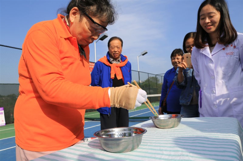 ??? 這是我院專門為糖友們設(shè)計的趣味運動會。糖友們戴著專用眼睛和手套,以模擬糖尿病并發(fā)癥給身體帶來的干擾。這樣的趣味運動會,既提高了糖友們對糖尿病的認(rèn)識,又為他們提供了一個相互交流、相互激勵的平臺。
