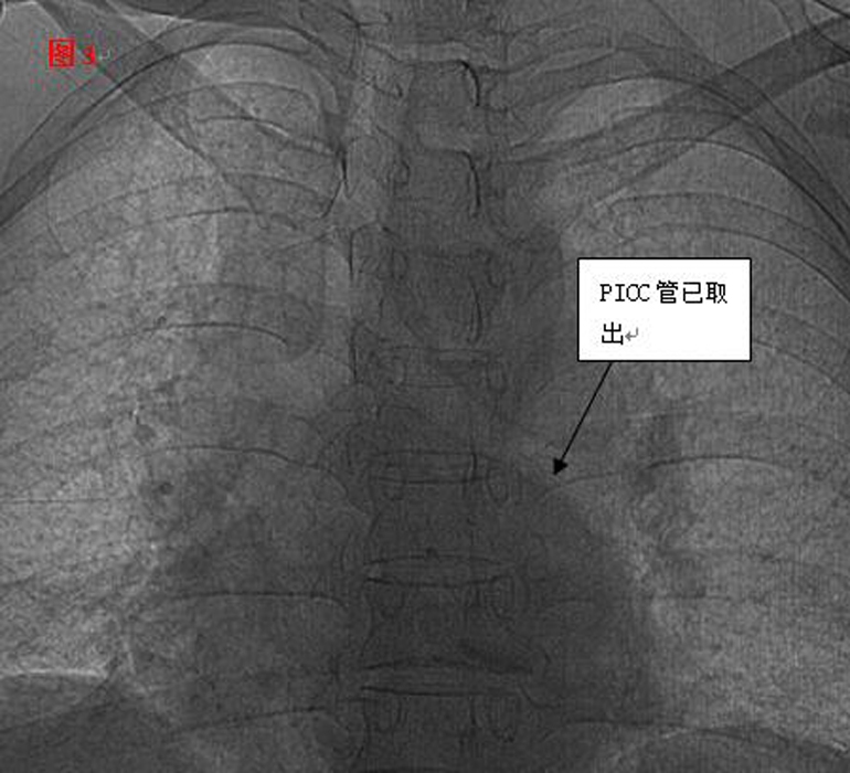 ??? 51歲的麗琴(化名)是一名乳腺癌患者。在當(dāng)?shù)蒯t(yī)院化療結(jié)束并拔除外周中心靜脈(PICC)置管的過程中,發(fā)現(xiàn)管子的前半部竟然斷裂留存于體內(nèi),這可把醫(yī)生和麗琴著實(shí)嚇了一跳,連忙轉(zhuǎn)到我院。