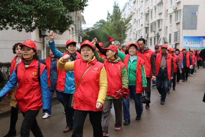 ??? 啟動(dòng)儀式完畢后,百人健步走活動(dòng)開(kāi)始,志愿者們繞花徑二村小區(qū)開(kāi)始了健步走。大伙兒的精氣神高漲,邊走邊高喊:“健康衢州行,健康衢州人。我運(yùn)動(dòng),我健康,我快樂(lè)。”