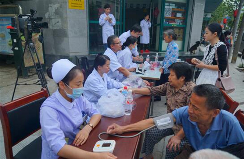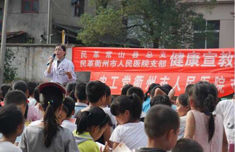 ??? 9月30日,民革衢州市人民醫(yī)院支部和農(nóng)工衢州市人民醫(yī)院支部一行9人來到常山縣白石鎮(zhèn)開展義診活動(dòng),吸引了許多當(dāng)?shù)匕傩涨皝韺めt(yī)問診。