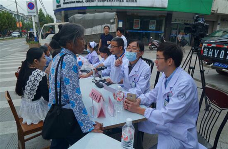 ? ??? 在義診現(xiàn)場,專家們忙著給村民們體檢、答疑解惑,并宣傳健康保健知識,除了提供免費(fèi)測量血糖和血壓服務(wù)外,還專門配備了心電圖機(jī)、眼科的裂隙燈等儀器設(shè)備為大家提供更細(xì)致地檢查。