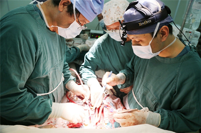 浙一醫(yī)院專家團(tuán)隊(duì)與衢州市人民醫(yī)院心臟外科團(tuán)隊(duì)緊張手術(shù)