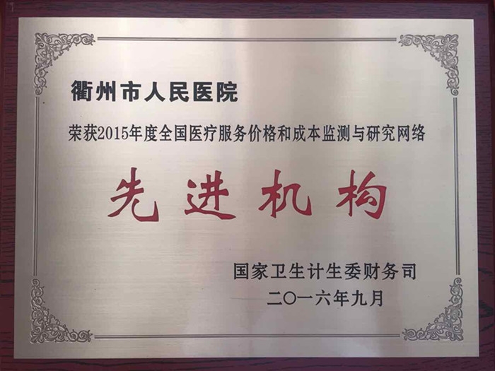據(jù)悉,在近一千家監(jiān)測單位中,衢州市人民醫(yī)院成為受表彰的53家先進(jìn)機(jī)構(gòu)之一,浙江省只有兩家醫(yī)療機(jī)構(gòu)獲得先進(jìn)機(jī)構(gòu),這是國家衛(wèi)計(jì)委對(duì)我院2015年度參與全國醫(yī)療服務(wù)價(jià)格和成本監(jiān)測數(shù)據(jù)上報(bào)工作的肯定,也是我院所有參與這項(xiàng)工作的科室、工作人員共同努力的成果。