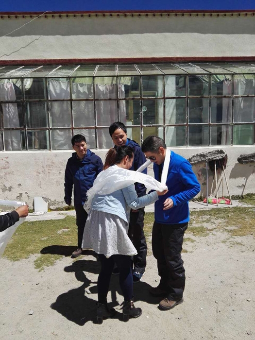 他們的辛勤勞動(dòng)也獲得了藏族同胞的肯定,當(dāng)?shù)夭刈逋氐貫樗麄儷I(xiàn)上了哈達(dá)以表謝意。