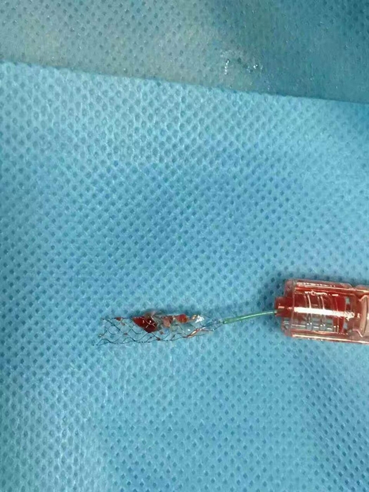 ??? 9月3日00:10 ?神經(jīng)外科團(tuán)隊?wèi){借深厚的介入功底及對顱腦血管病變治療的經(jīng)驗(yàn),沉穩(wěn)地將栓子取出,血管恢復(fù)再通,梗塞區(qū)血流灌注隨即恢復(fù)。