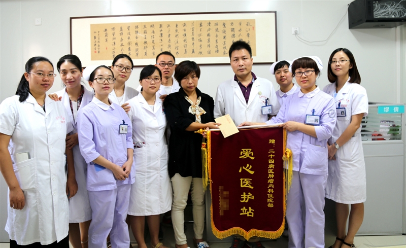 ??? 據(jù)悉,腫瘤內(nèi)科已多次為貧困患者組織募捐,去年12月,科主任鄭勤紅及護(hù)士長張小芳組織科室醫(yī)務(wù)人員在為癌癥患者謝冬蓮舉行愛心義賣臍橙,籌集愛心款四萬多元。通過愛心傳遞,讓社會(huì)更多愛心人士參與進(jìn)來,一起幫助這些貧困患者度過難關(guān);同時(shí)也鼓勵(lì)患者積極與病魔作斗爭,增加他們抗癌的信心。一直以來,腫瘤內(nèi)科醫(yī)護(hù)人員將“恪盡職守,善待病人”的服務(wù)理念轉(zhuǎn)化為“四心”活動(dòng),即熱心助人、細(xì)心查房、耐心問診、貼心服務(wù),受到了患者及家屬一致好評!