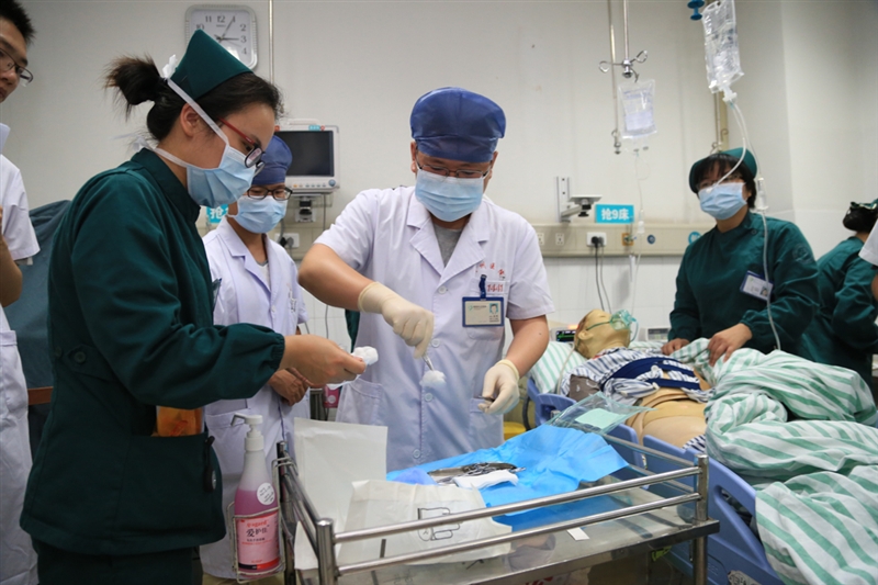 ??? 演練結(jié)束后,主考官進行了總結(jié)點評:這次演練各科室高度重視,配合默契,急救工作流程合理,急救操作和處置得當,是醫(yī)院急診急救的一次真實體現(xiàn),達到了預(yù)期效果。通過這次演練各科室、各部門要認真總結(jié)經(jīng)驗,查找工作中存在的不足,提高應(yīng)急救援的綜合能力。確保真正發(fā)生突發(fā)事件時能夠迅速組織力量,減少在突發(fā)事件中的人員傷亡,更好地保障全市人民群眾的身體健康和生命安全。