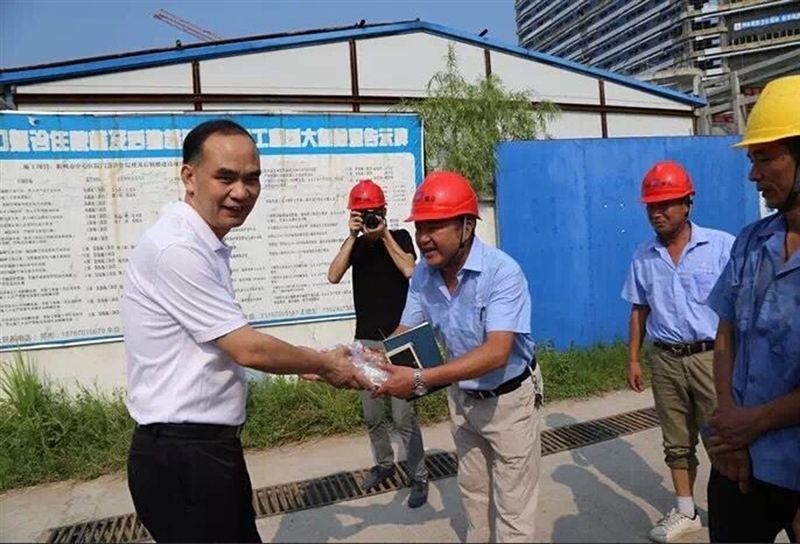 ??? 在工地現(xiàn)場(chǎng),酷暑下建筑工人們熱火朝天地忙碌著。陳錦標(biāo)詳細(xì)詢(xún)問(wèn)了建筑工人的工作和生活情況,并為他們送上防暑降溫用品。希望各部門(mén)落實(shí)好降溫防暑的各項(xiàng)工作,確保施工安全。