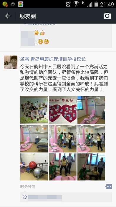 ??? 參觀過程中孟雪教授對我院開展的自然分娩(自由體位分娩、導(dǎo)樂陪伴、非藥物分娩鎮(zhèn)痛)及母乳喂養(yǎng)等服務(wù)給予了肯定。她說她看到了一個充滿活力和激情的助產(chǎn)團隊,盡管條件受限,但現(xiàn)代助產(chǎn)的元素一應(yīng)俱全。