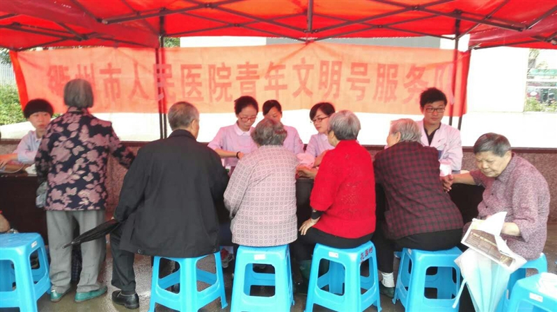 ??? 6月7日上午,我院市級“青年文明號”十一病區(qū)組織了青年志愿者到巨化新苑社區(qū)進行為期一天的義診活動。活動內(nèi)容包括:為社區(qū)居民測血糖、血壓,進行疾病相關知識的咨詢及常見病、多發(fā)病的健康知識普及。