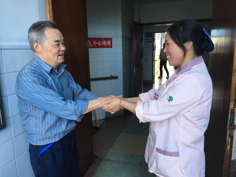 ??? 當徐英和家屬把錦旗送到王阿姨手上時,靦腆的她露出了羞澀的笑容,很多圍觀的病人和家屬都對王阿姨豎起了大拇指,嘖嘖稱贊……