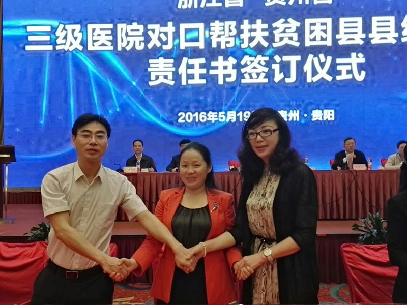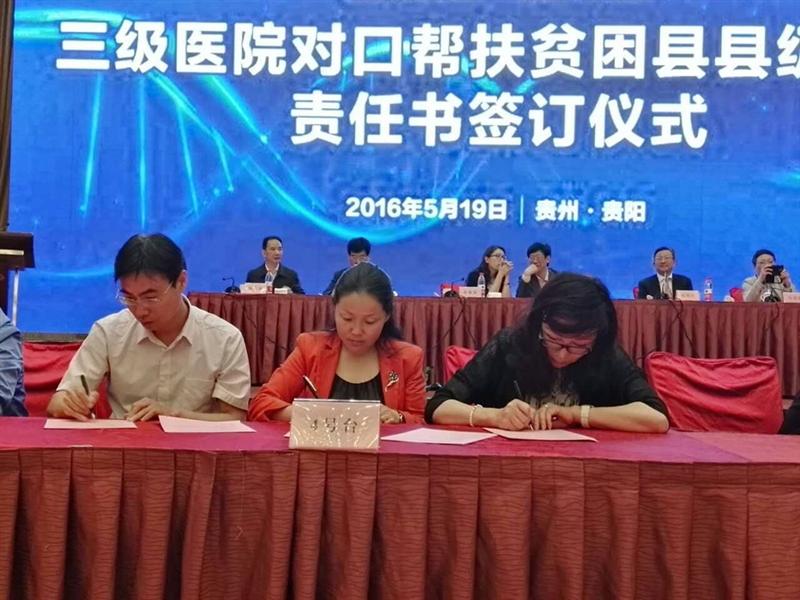 ??? 5月19日,市衛(wèi)生計生委黨委委員張??ш牐以狐h委書記徐天才一行4人趕赴貴陽,參加浙黔兩省第三輪浙江省三級綜合醫(yī)院對口幫扶貴州省貧困縣縣級醫(yī)院責(zé)任書簽訂儀式暨2016年醫(yī)院管理培訓(xùn)。