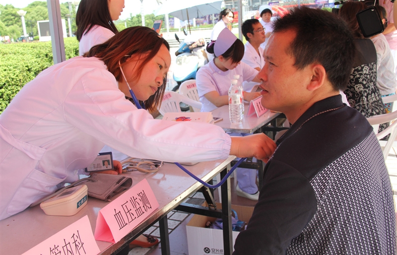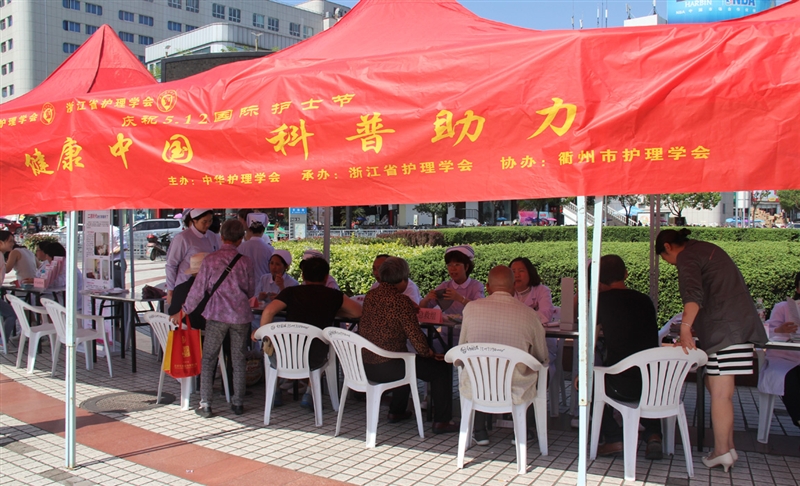 ??? 5月12日下午14:00,衢州市護(hù)理學(xué)會(huì)組織衢州市人民醫(yī)院、衢州市中醫(yī)院、衢州市第三醫(yī)院、衢州市婦保醫(yī)院的25名醫(yī)護(hù)人員在火車站廣場(chǎng)進(jìn)行“健康中國 科普助力”的義診活動(dòng)?;顒?dòng)現(xiàn)場(chǎng)的醫(yī)務(wù)人員分為母嬰保健組、慢病宣傳組、急救知識(shí)普及組及中醫(yī)康復(fù)護(hù)理組等,根據(jù)各自的專業(yè)知識(shí)進(jìn)行義診及科普知識(shí)宣傳。