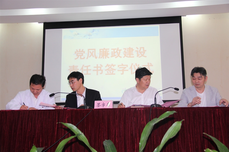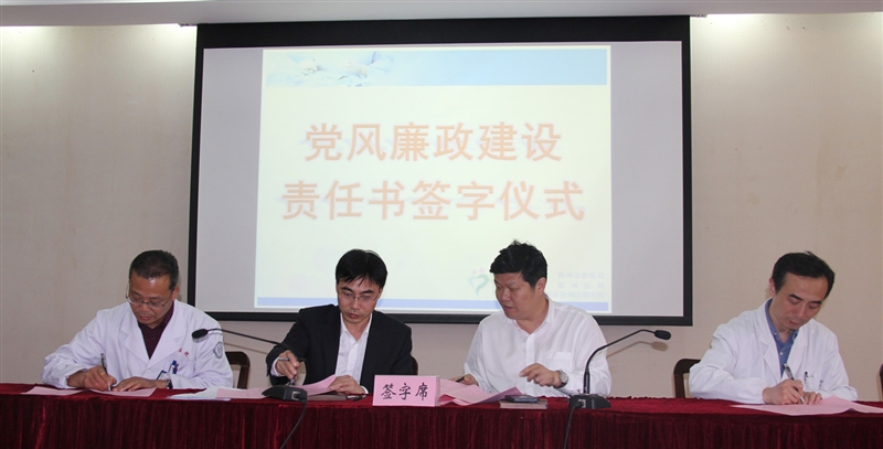 ??? 院長(zhǎng)陳震宏、黨委書(shū)記徐天才與內(nèi)科片、外科片、重癥醫(yī)學(xué)科、藥學(xué)部、設(shè)備處、信息處等科室代表簽訂2016年黨風(fēng)建設(shè)和廉政反腐工作責(zé)任書(shū),逐一落實(shí)責(zé)任,同時(shí)要求,全院干部職工要明確責(zé)任,履職盡責(zé),勇于擔(dān)當(dāng),大力營(yíng)造遵規(guī)守紀(jì)、風(fēng)清氣正、干事創(chuàng)業(yè)的行業(yè)氛圍。