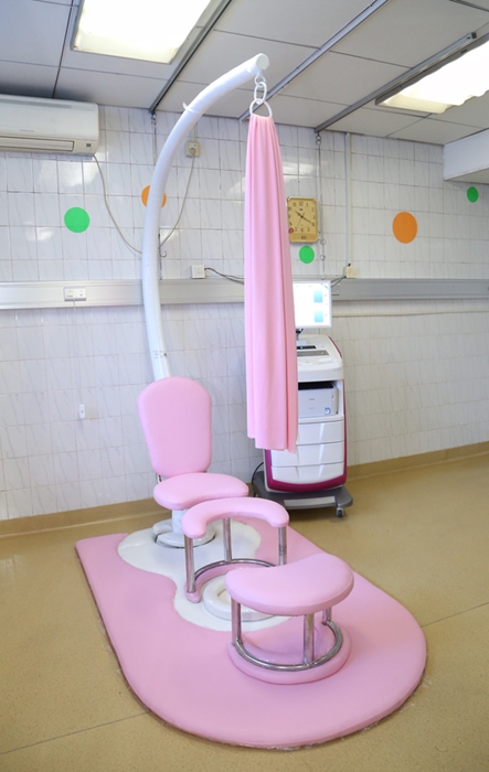 ??? 衢州市人民醫(yī)院在全市首家引進(jìn)多功能懸吊式分娩座椅,該組合儀設(shè)計科學(xué),符合人體力學(xué)和平衡原理。既可整體使用,又可拆分為獨立的分娩凳、分娩球、分娩地墊,拆裝方便,使用靈活。滿足產(chǎn)婦自由體位分娩中懸吊位及坐臥位、前傾位等多種體位的需求,亦可以配合分娩球、分娩地墊在產(chǎn)程中做各種體位以減輕產(chǎn)婦疼痛、糾正胎位、加快產(chǎn)程、促進(jìn)骨盆的擴張,利于胎兒下降促進(jìn)自然分娩。