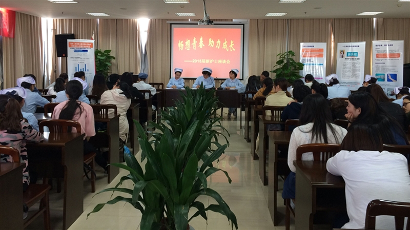??? 4月28日,我院護理部在門診十二樓會議室召開“暢想青春? 助力成長”為主題的新護士座談會。會議由護理部主任徐勤容主持,2015年參加工作80余名新護士參加了座談會。