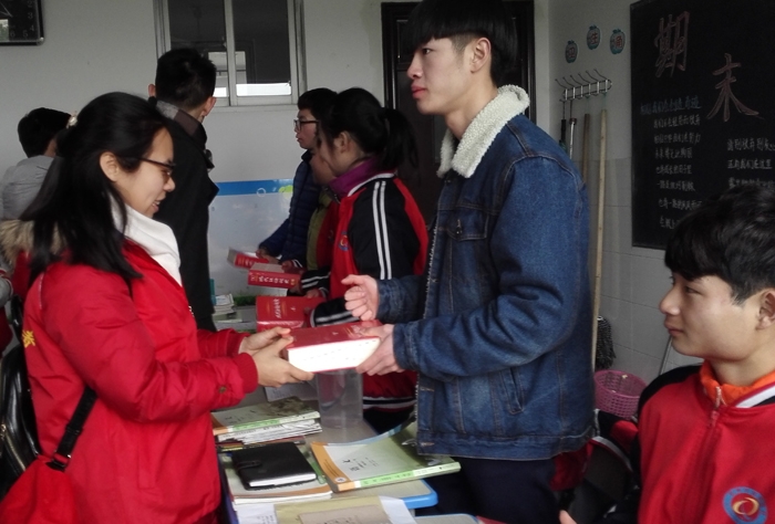 ??? 為積極響應(yīng)團(tuán)市委在全市開(kāi)展的“志愿者在您身邊”新春送溫暖志愿服務(wù)主題實(shí)踐活動(dòng),1月20日我院團(tuán)員志愿者來(lái)到了市特殊教育學(xué)校,為該校的學(xué)生們送去了《現(xiàn)代漢語(yǔ)詞典》,與同學(xué)們愉快地溝通交流、互換聯(lián)系方式,收集、領(lǐng)取了他們的微心愿,并與該校高三(1)班的學(xué)生結(jié)對(duì)。