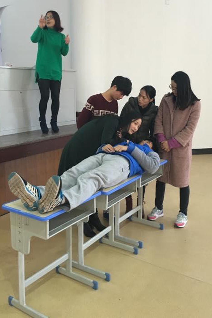 ???? 本次講座內(nèi)容有心肺復蘇、氣道梗阻的急救和外傷的處理,由聾啞學校老師全程手語翻譯。課堂上孩子們聽得很入迷,志愿者手把手教孩子們急救的方法和技能,孩子們爭先恐后的上臺參與示范。
