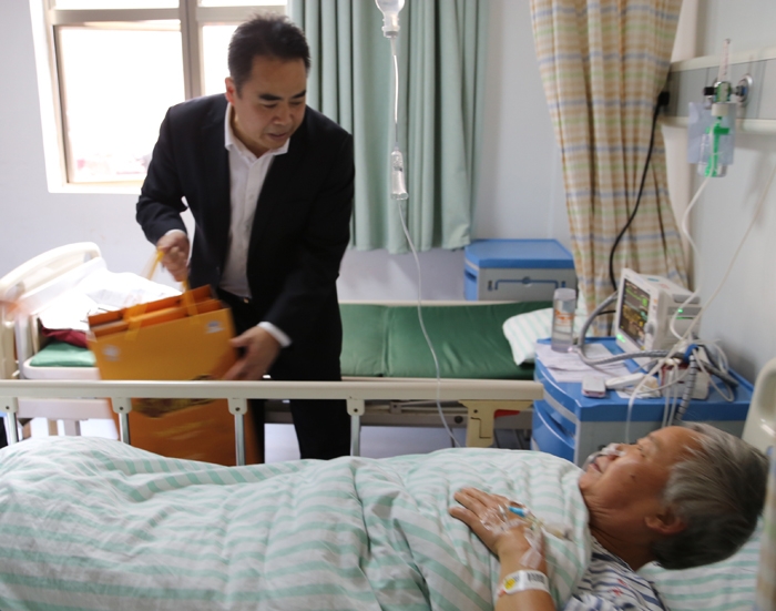 ??? 11月23日,我院副院長(zhǎng)廖小方看望慰問(wèn)生病住院的周建珍和徐水云,并為他們送去了代表醫(yī)院全體干部職工濃濃愛(ài)心的慰問(wèn)品。