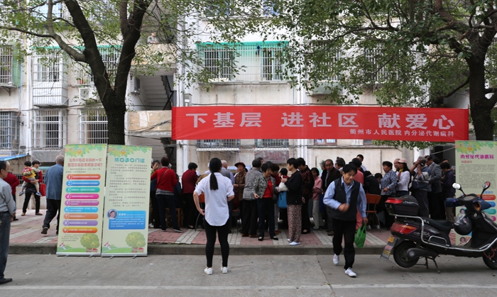 ??? 在斗潭社區(qū)衛(wèi)生服務(wù)站門前的活動(dòng)現(xiàn)場一早就排起長長的隊(duì)伍,我院內(nèi)分泌代謝病科近20余位醫(yī)護(hù)人員為斗潭社區(qū)居民免費(fèi)測量血壓、血糖、血脂、尿酸,進(jìn)行骨質(zhì)疏松風(fēng)險(xiǎn)評估,并為60周歲以上老人免費(fèi)測骨密度,耐性細(xì)致地解答社區(qū)居民的咨詢。