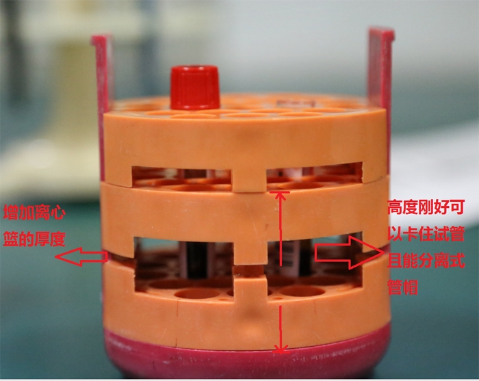 ??? 這一棘手的問題一直被檢驗(yàn)科陳芳建主任、余秋明等同事看在眼里記在心上。在空余時(shí)間,他們對離心籃的脫蓋原理精心研究,反復(fù)測量計(jì)算,多次嘗試,終于找到門道,必須將離心籃進(jìn)行改進(jìn)一一墊高,改造“工程”就這樣開始了。