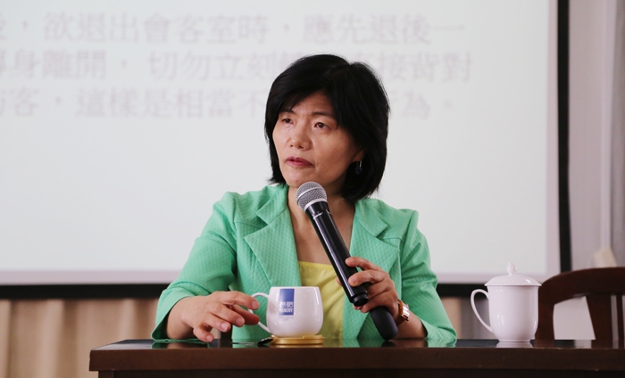 如何握手、如何鞠躬、如何奉茶、交換名片和會議座位安排等國際服務禮儀在許教授的教導之下學員們了解到了許多平時工作生活中會忽略掉的細節(jié)。