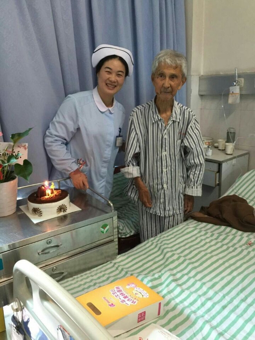 ??? 住院期間,同病房的病友們提起他,總會豎起大拇指,“王成德,我聽說過,當(dāng)年人民醫(yī)院響當(dāng)當(dāng)?shù)墓强浦魅?!?“老爺子醫(yī)術(shù)很高的!”這位為醫(yī)大半生的可愛老人因病時而清醒時而糊涂,在這個熟悉的醫(yī)院里,他不再是醫(yī)生而是與病魔抗?fàn)幍幕颊?。但他仍喜歡大家叫他王醫(yī)師,開心時就說要為病人開處方了,有時候半夜也會鬧著去值班。一個簡單的生日會讓他燦爛滿面一整天。