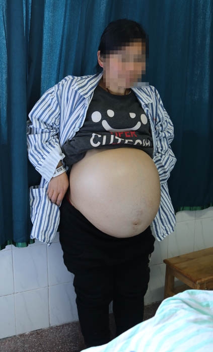 ??? 廣西省南寧市37歲的黃女士,1年前因月經(jīng)不調(diào)當(dāng)?shù)蒯t(yī)院B超檢查時(shí)發(fā)現(xiàn)腹腔內(nèi)有一枚鴨蛋大小的腫瘤,由于家庭條件困難,她一直堅(jiān)持在江湖郎中處服中藥治療,平時(shí)省吃儉用存下的2萬(wàn)多元錢都花光了。黃女士的肚子越來(lái)越大,腹部隆起如球形,活動(dòng)困難、呼吸費(fèi)力、食欲不振,嚴(yán)重影響正常生活。