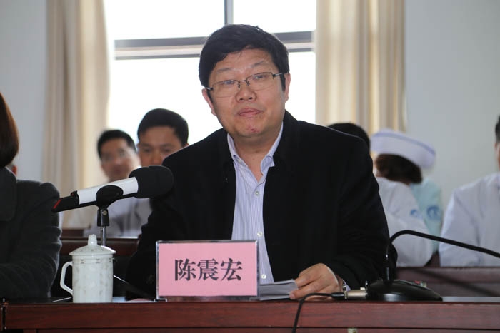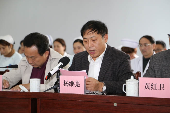?? ??? 程君標(biāo)致歡迎詞,對(duì)衢州市人民醫(yī)院開化分院掛牌成立表示祝賀。