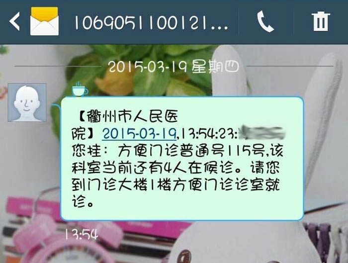 好消息! 我院預(yù)約掛號(hào)開(kāi)通短信提醒服務(wù)